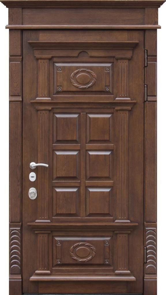 Входные двери. Они сочетают металлический каркас с массивной отделкой, обеспечивая надежную защиту от взлома, а также отличные тепло- и шумоизоляционные характеристики. Варианты массива позволяют добиться солидного и эстетичного внешнего вида, сочетающегося с любым фасадом.